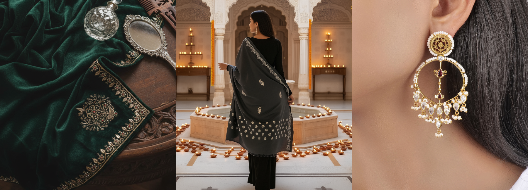 The Awadh Collection is inspired by the refined elegance of Ganga-Jamuni Tehzeeb, where gold combined generously with silver on textiles and artefacts to create luxurious masterpieces. The collection is reimagined with nuances from the past, created for modern day home and ensembles.