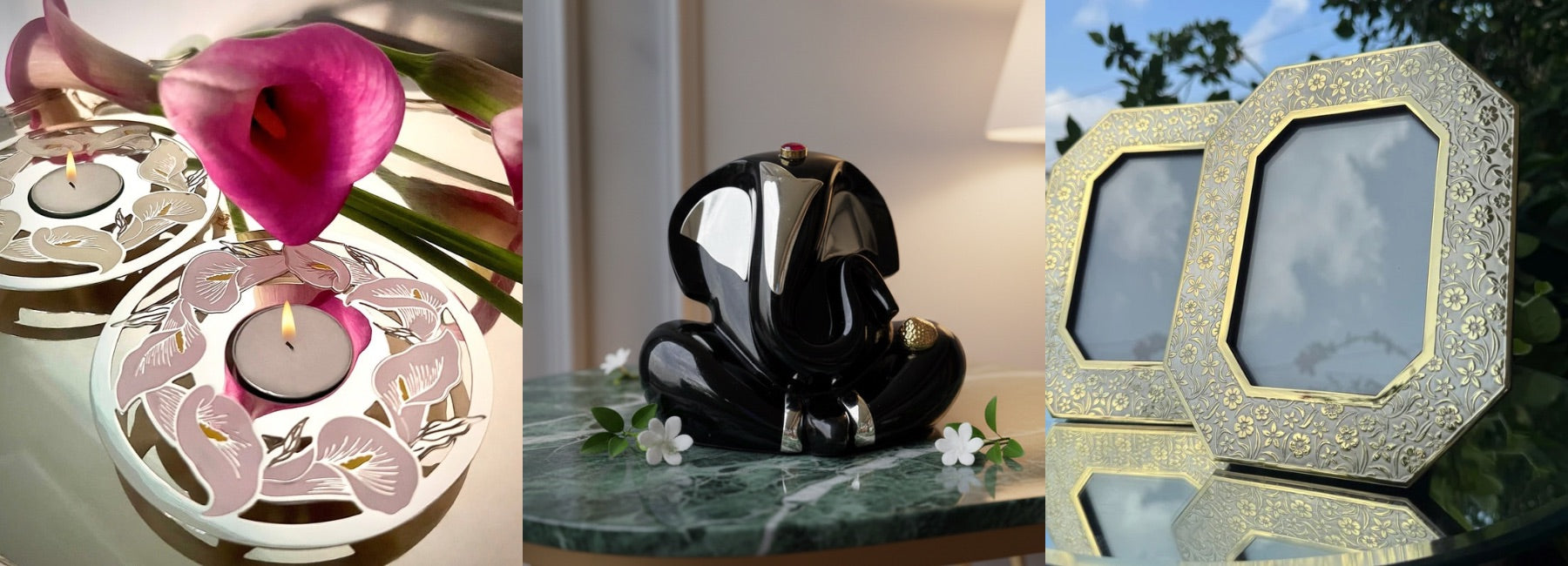 Where 24k gold meets coloured glass in the rare art of Thewa - a celebration of regal craftsmanship preserved through generations.